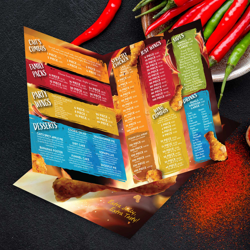 We create each menu template by hand in our in-house design studio and utilize years of industry knowledge and know-how to make sure you have great-looking menus.