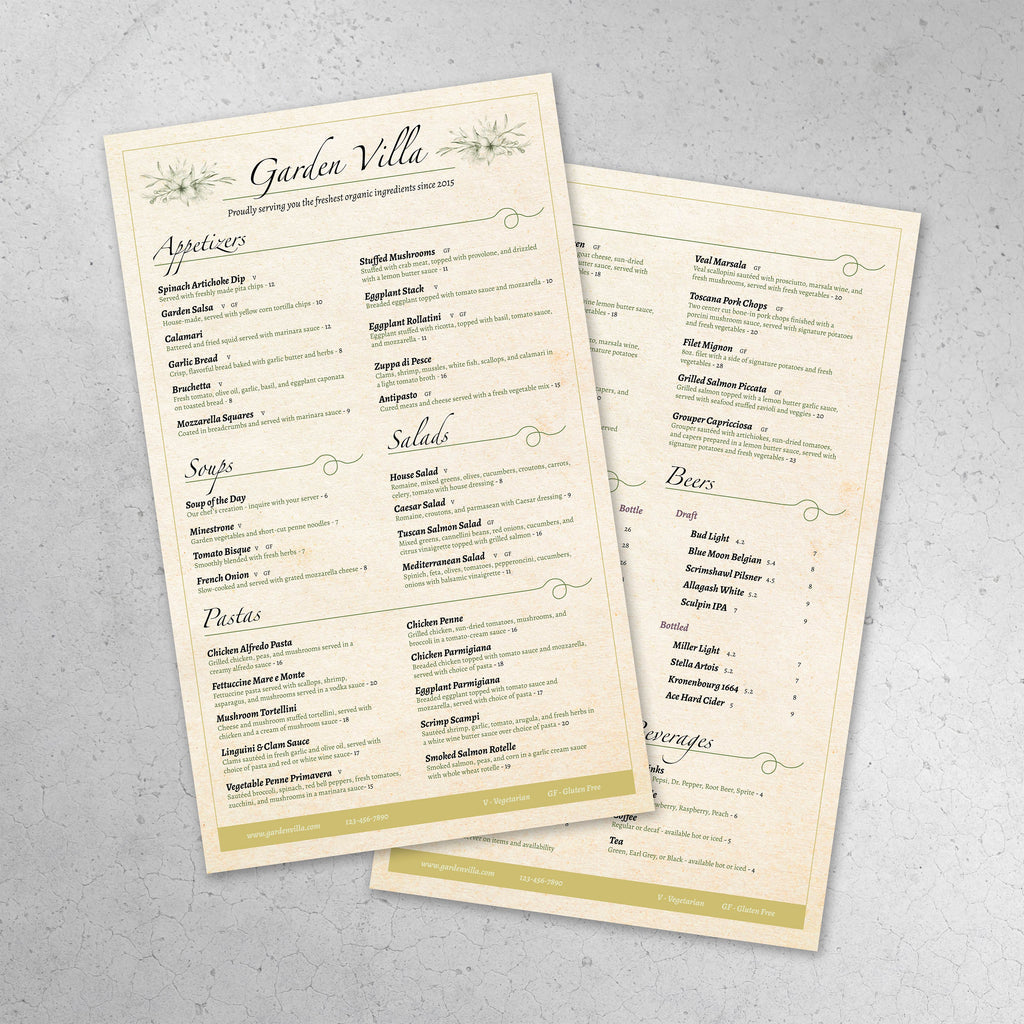 We create each menu template by hand in our in-house design studio and utilize years of industry knowledge and know-how to make sure you have great-looking menus.
