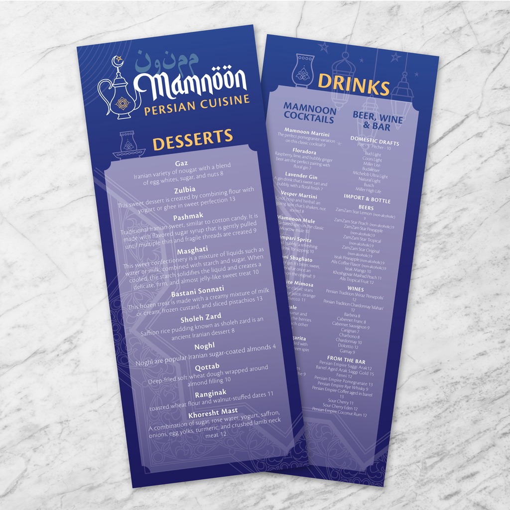 We create each menu template by hand in our in-house design studio and utilize years of industry knowledge and know-how to make sure you have great-looking menus.