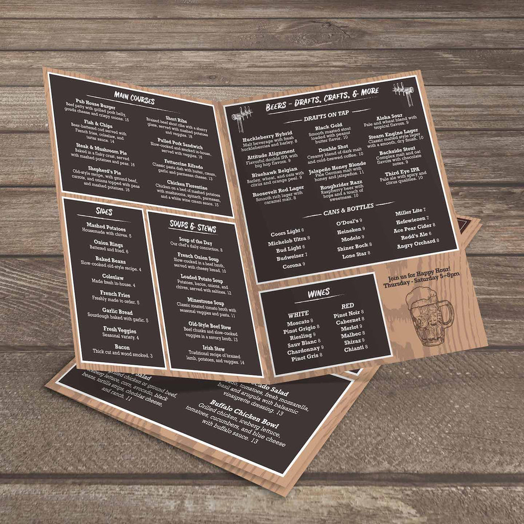 We create each menu template by hand in our in-house design studio and utilize years of industry knowledge and know-how to make sure you have great-looking menus.