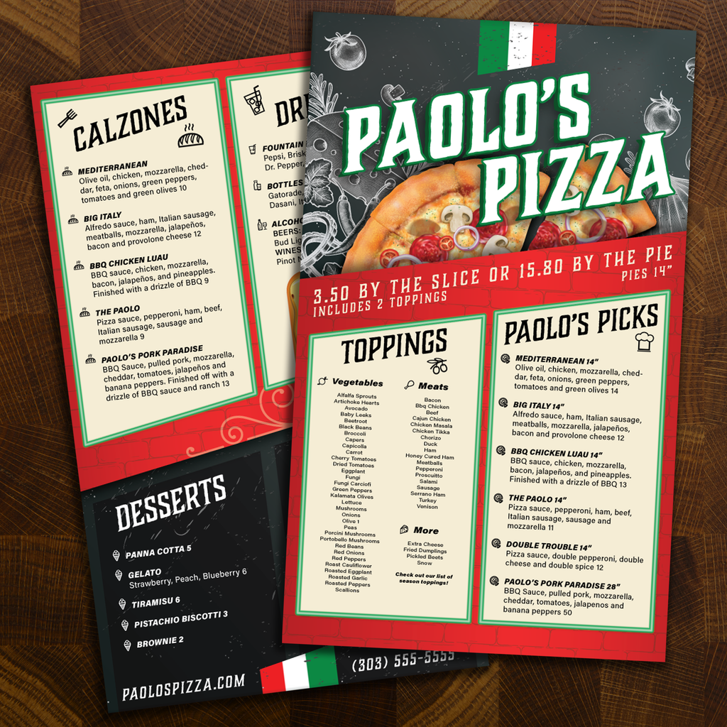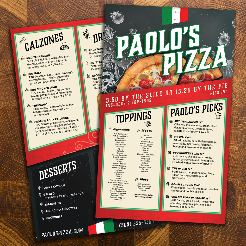 We create each menu template by hand in our in-house design studio and utilize years of industry knowledge and know-how to make sure you have great-looking menus.