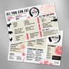 Nous créons chaque modèle de menu de A à Z et le concevons pour donner à votre restaurant une allure professionnelle, sans avoir à payer un graphiste. Saisissez vos descriptions et vos prix exactement comme vous le souhaitez. Envoyez-nous ensuite le modèle par e-mail et nous vous enverrons un bon à tirer par courrier pour que vous puissiez le voir immédiatement. C'est gratuit, bien sûr !