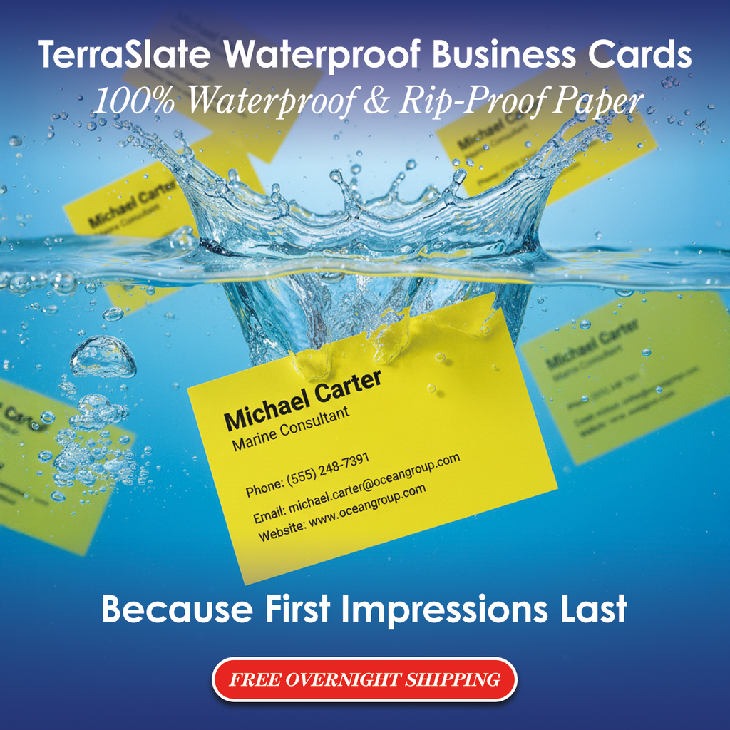 Les cartes de visite TerraSlate sont idéales pour un usage quotidien ainsi que pour des secteurs uniques tels que l'hôtellerie, les cartes promotionnelles, les services d'urgence, les entreprises côtières et de montagne et de nombreuses autres stratégies de marque qui nécessitent une carte de visite durable.