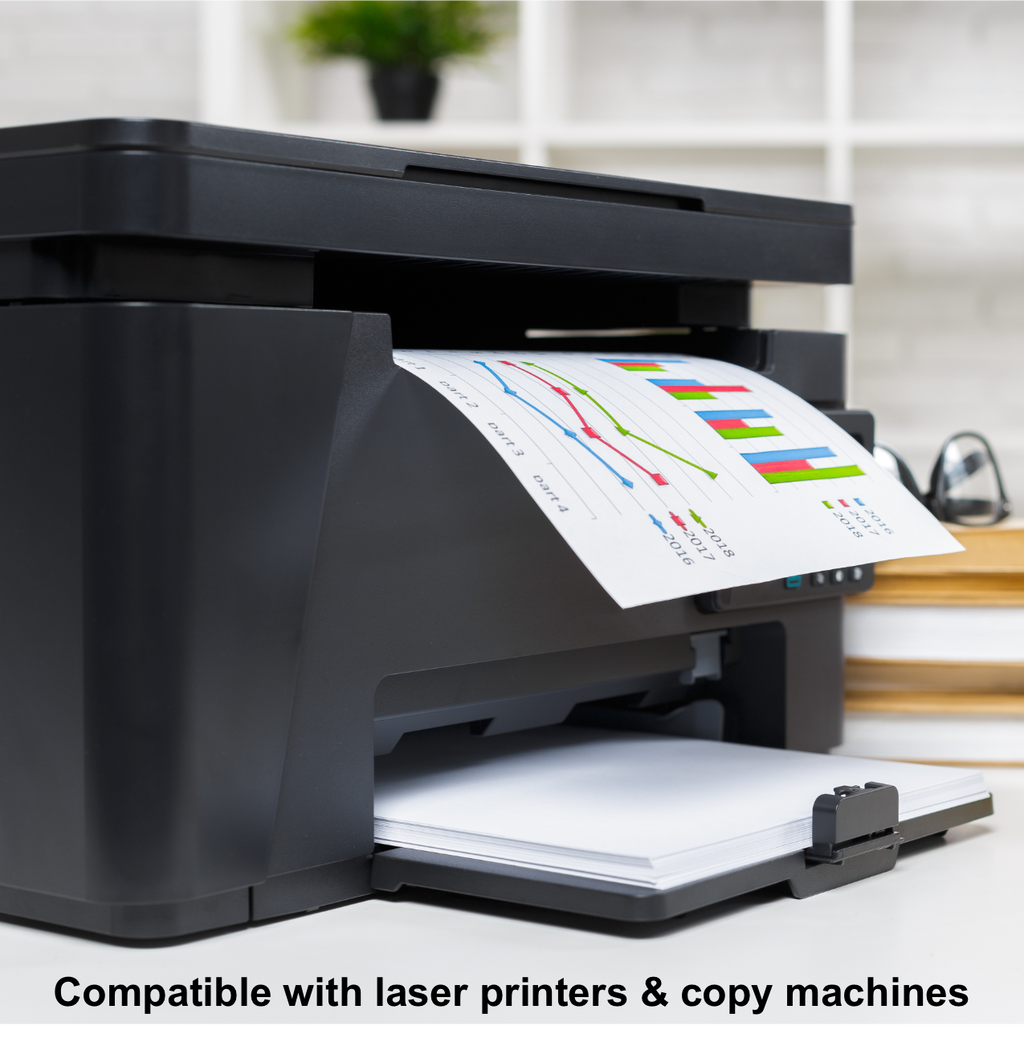- Compatible with laser printers, copy machines, ballpoint pens, & sharpies
