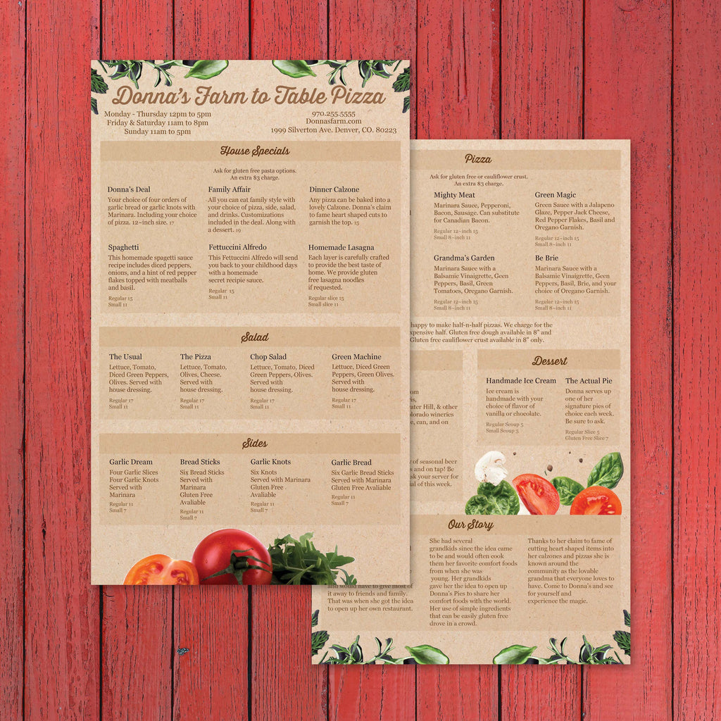 Farm to Table Pizza Menu Template 8.5" x 14"