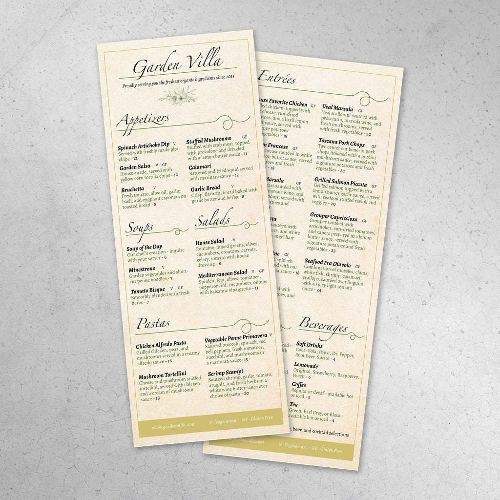 We create each menu template by hand in our in-house design studio and utilize years of industry knowledge and know-how to make sure you have great-looking menus.